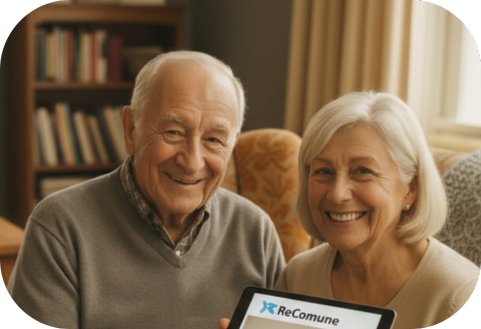 App-based solution designed for seniors to have meaningful, warm, positive and secure conversations to end lonliness (ReComune).