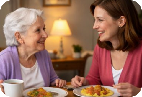 Meals are more than nutrition they are one of the strongest daily anchors for people with Alzheimer’s. Familiar mealtime routines provide comfort, structure, and social connection.